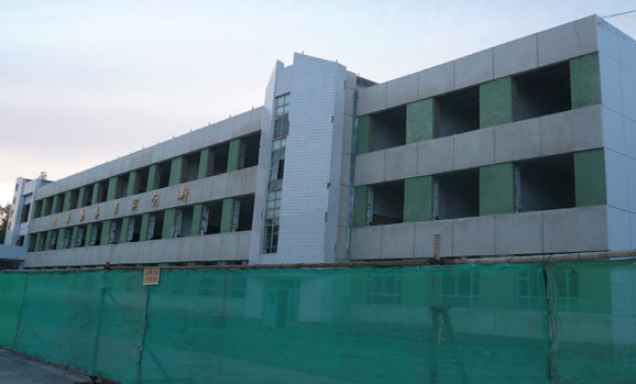 新疆生产建设兵团农八师一四二团第一中学初中教学楼前,拉起了防护网。网内空地堆放着钢筋、水泥、沙子等建筑材料,有的门窗、暖气包已被撤除,楼房墙壁粉刷的表皮已被铲掉,施工人员在重新粉刷;有的墙面的水泥已被铲除,红砖裸露在外。这是笔者6月6日在施工现场所见的情景。 据技术人员介绍,靠近楼梯的墙壁,墙面被铲除后,罩上钢筋网,并各增加4厘米厚的混凝土进行加固。整座楼的外墙将增加8根抗震柱,楼内将穿6根钢拉杆,增加抗震能力。门窗将更换为节能、保温的塑钢门窗,外墙将贴苯板,增强教室的保暖能力。为了确保工程质量,所用建筑材料要到质监部门进行质量鉴定。 据了解,正在加固的这栋教学楼始建于1995年,面积2900平方米,属于砖混结构,由国家投资180多万元,对这栋教学楼进行抗震加固。从6月1日开始由石河子天筑一建中标施工,预计加固改造工程将在新学期开学前完工。经过加固的初中教学楼,要求达到抗地震烈度8度的设防标准。施工单位领导表示:将让学校成为最安全、家长最放心的地方。